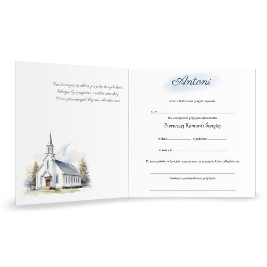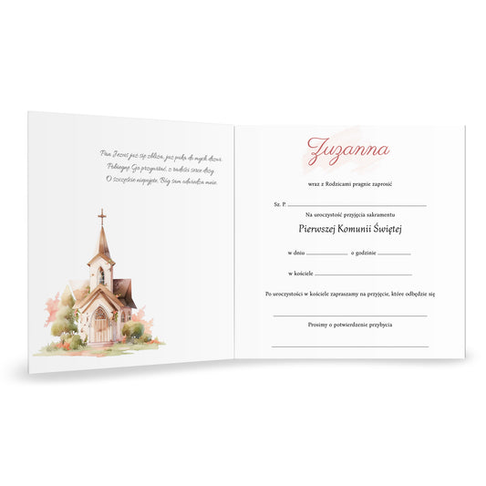 Zaproszenie na I Komunię Świętą – z kościołem + własne zdjęcie