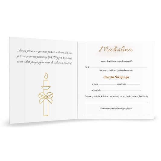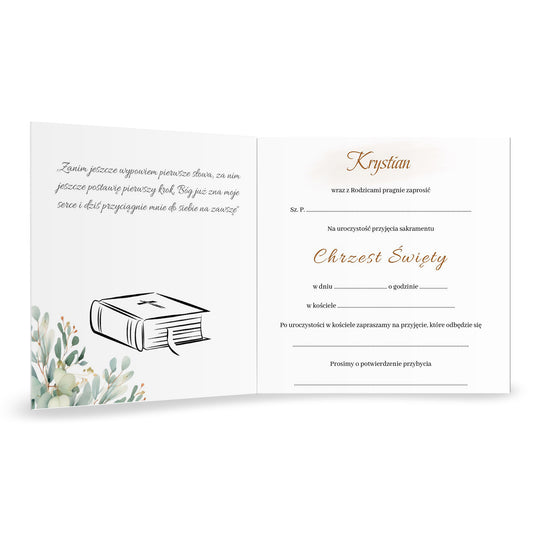 Zaproszenie na Chrzest składane 15x15 z kopertą - Świeca i eukaliptus