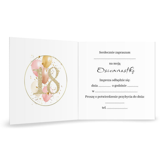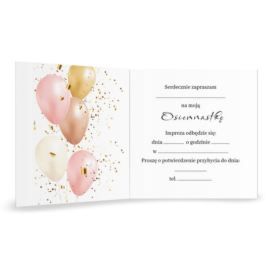 Zaproszenie na 18 urodziny 15x15 z kopertą - Balony