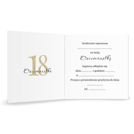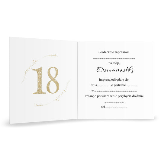 Zaproszenie na 18 urodziny 15x15 z kopertą - Złote