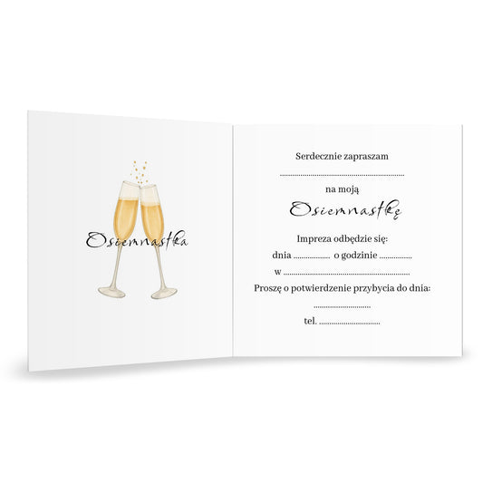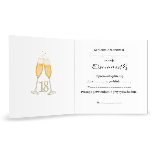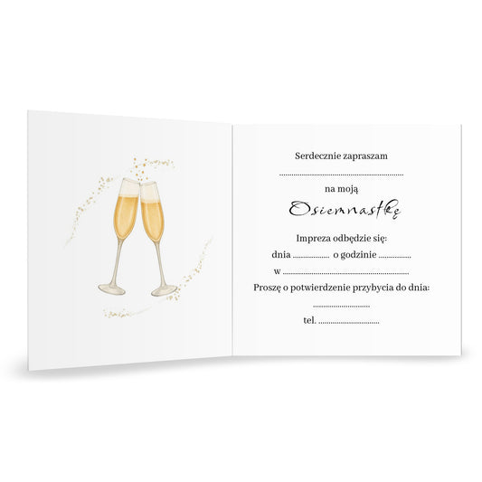 Zaproszenie na 18 urodziny 15x15 z kopertą - Kieliszki