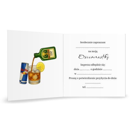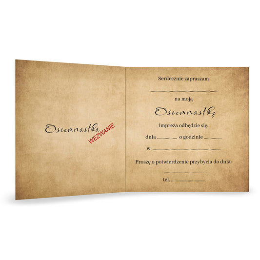 Zaproszenie na 18 urodziny 15x15 z kopertą - Jager
