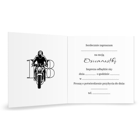 Zaproszenie na 18 urodziny 15x15 z kopertą - Motocykl