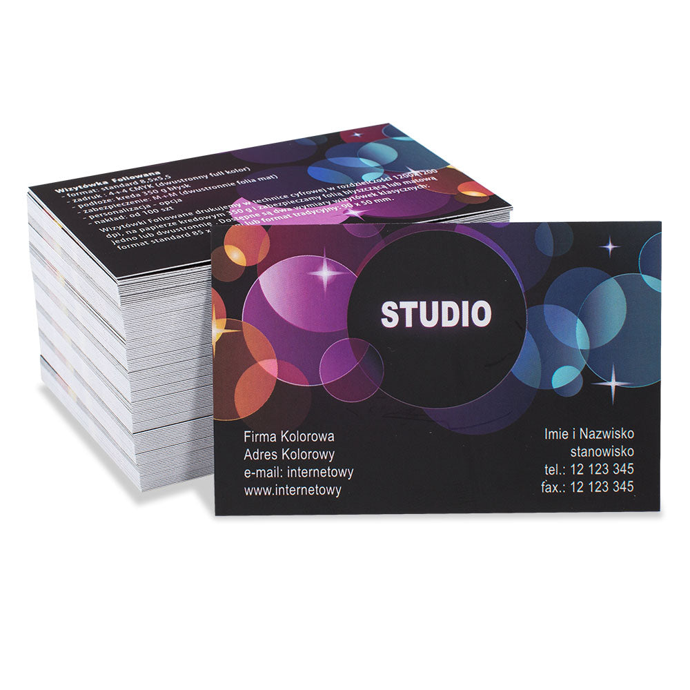 Wizytówki to podstawowa forma eleganckiej i niewielkiej reklamy w każdej firmie. Stanowią ważny element w trakcie nawiązywania znajomości biznesowych, ułatwiając kontakt i identyfikację między podmiotami. Pomimo swojego rozmiaru, wizytówki są całkiem pojemne i mogą zawierać wszystkie najważniejsze, w danej sytuacji, informacje. Drukujemy je w dwóch formatach: standardowym – 8,5 × 5,5 cm (uniwersalny format o wymiarach karty kredytowej, mieszczący się bezproblemowo w portfelu i wizytowniku, typowy dla Zachodniej Europy) oraz tradycyjnym – 9 × 5 cm (stosowany od wielu lat w Polsce i Europie Wschodniej).