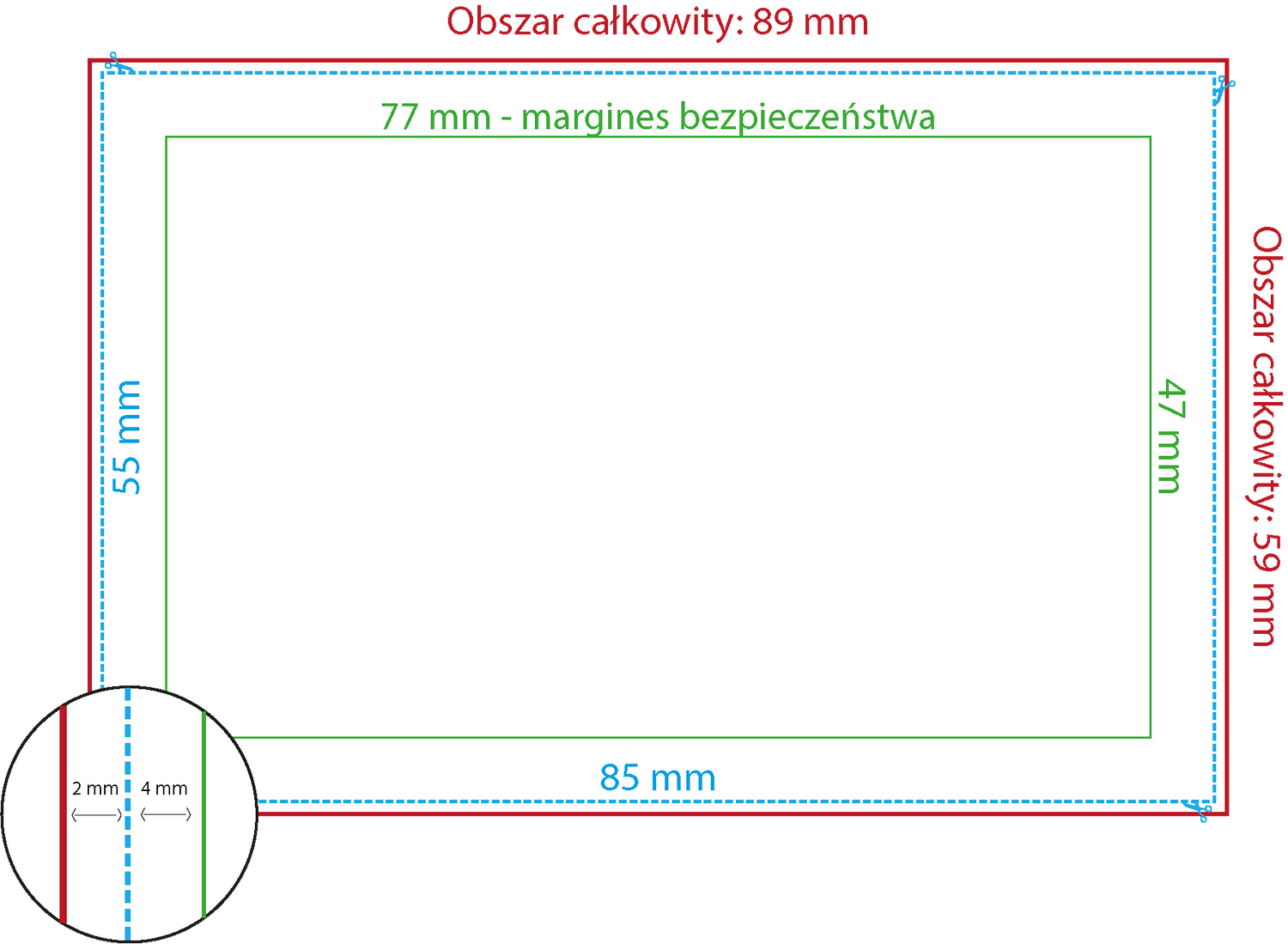 - margines bezpieczeństwa 4 mm na jedną stronę (za bezpiecznym marginesem nie powinny znajdować się teksty oraz grafiki)