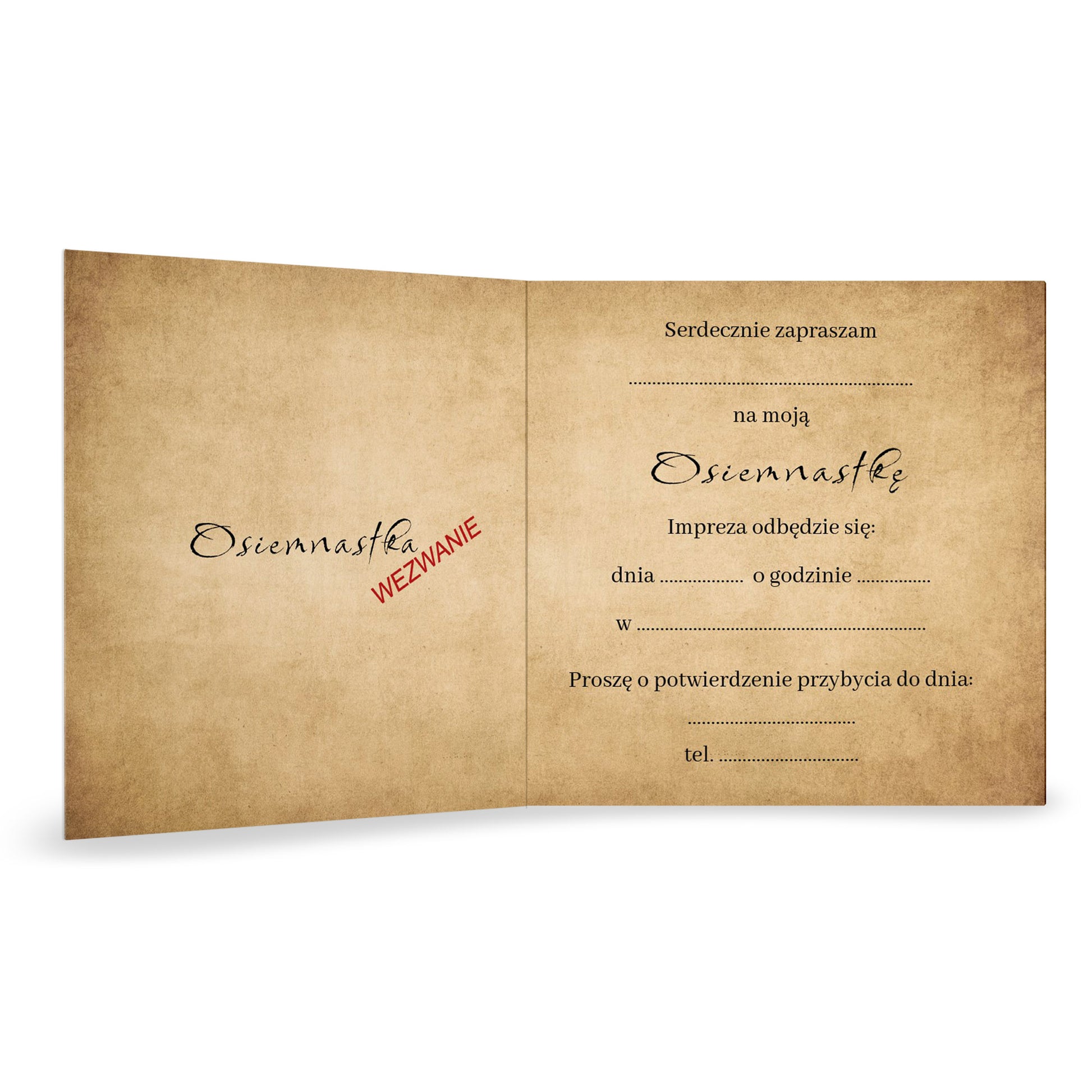 Zaproszenie na 18 urodziny 15x15 z kopertą - Akta