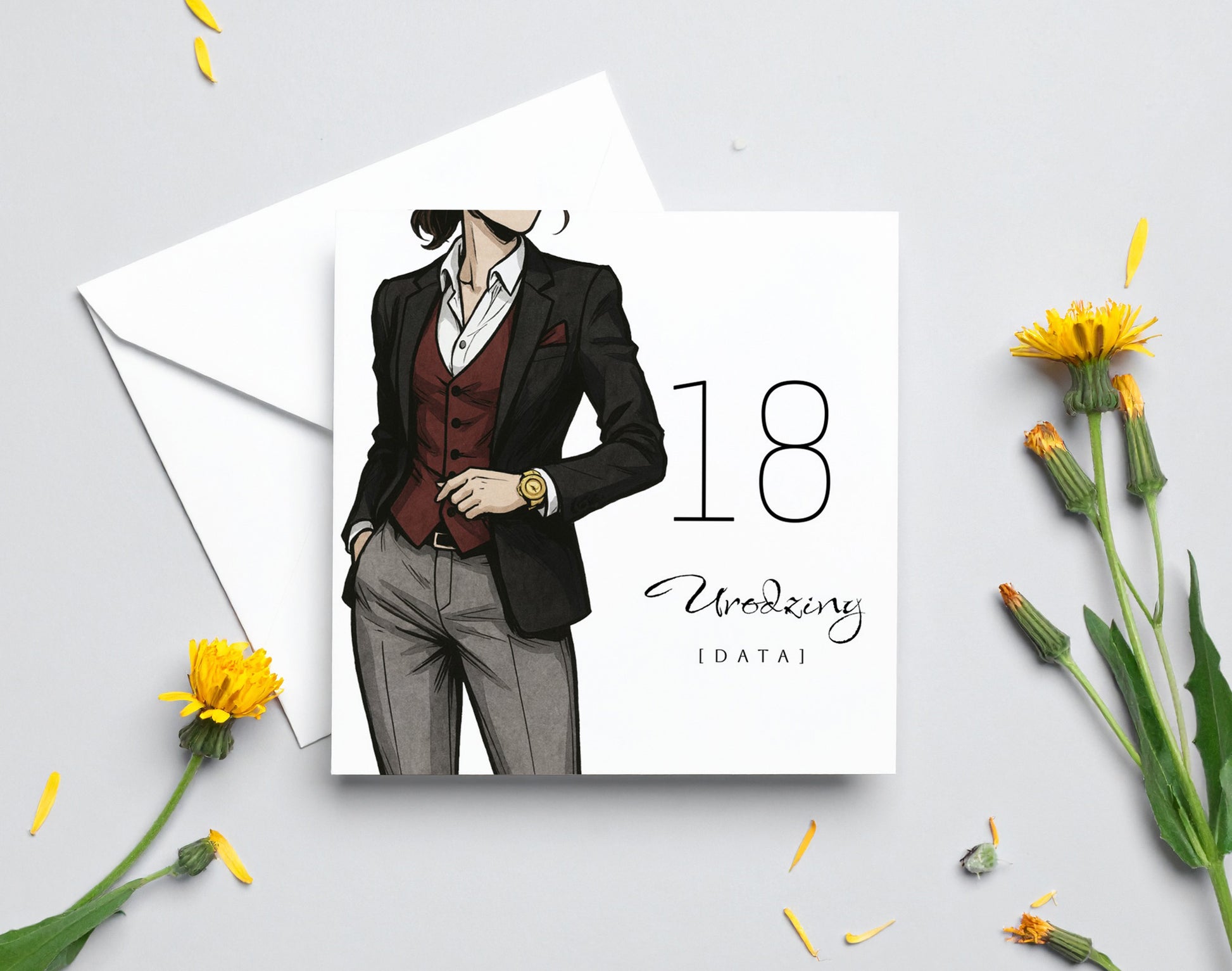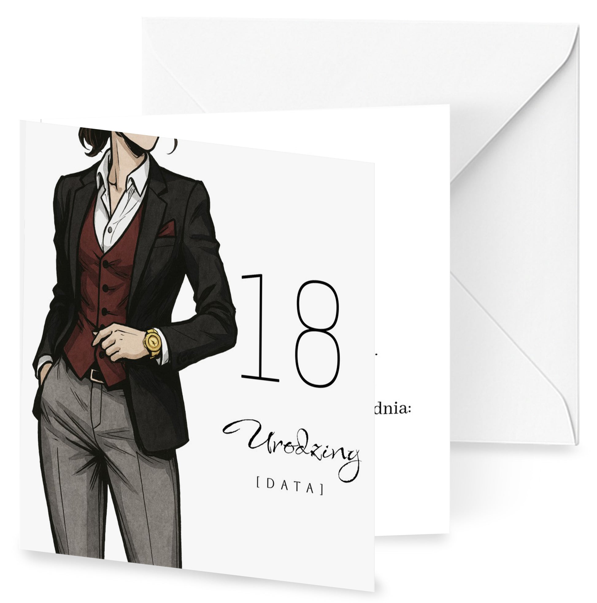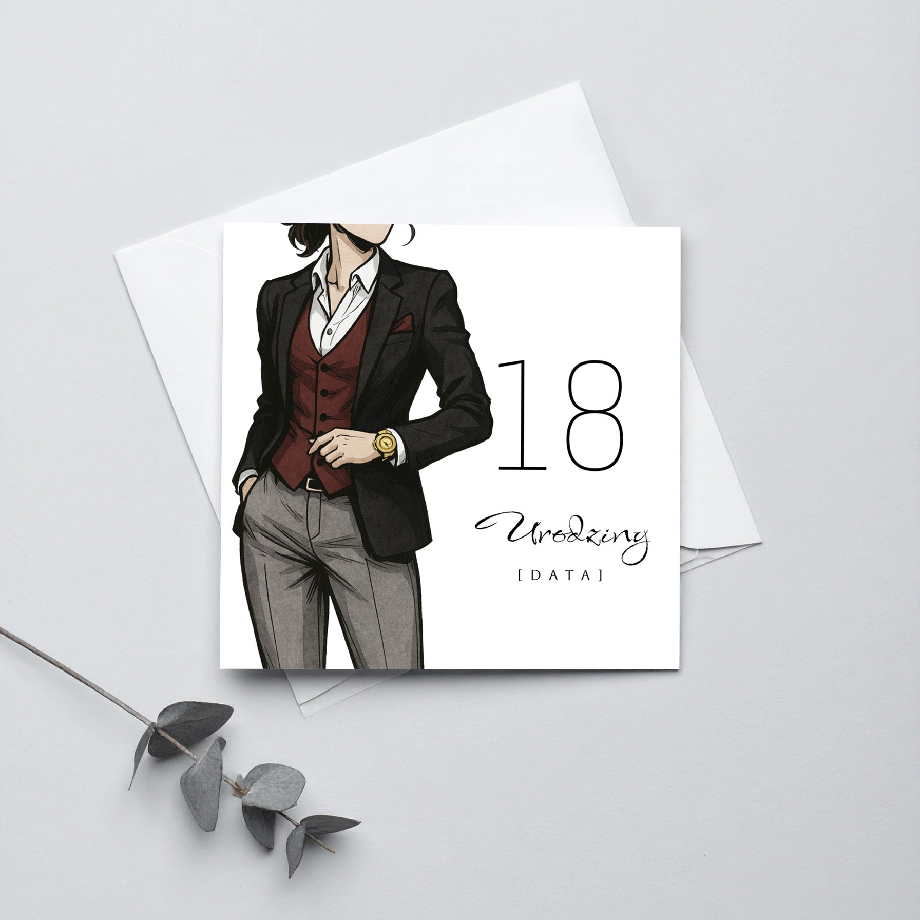 Zaproszenie na 18 urodziny 15x15 z kopertą - Garnitur damski