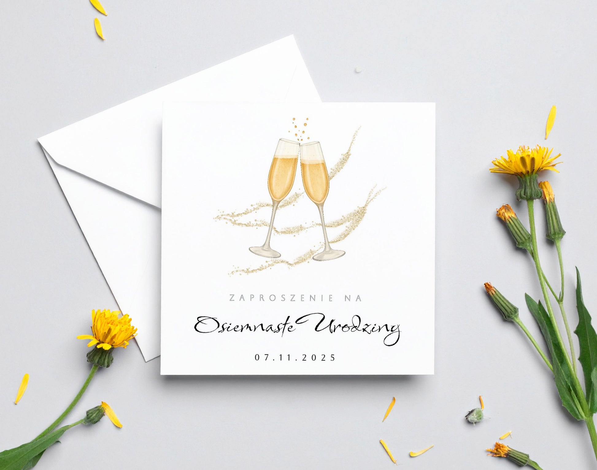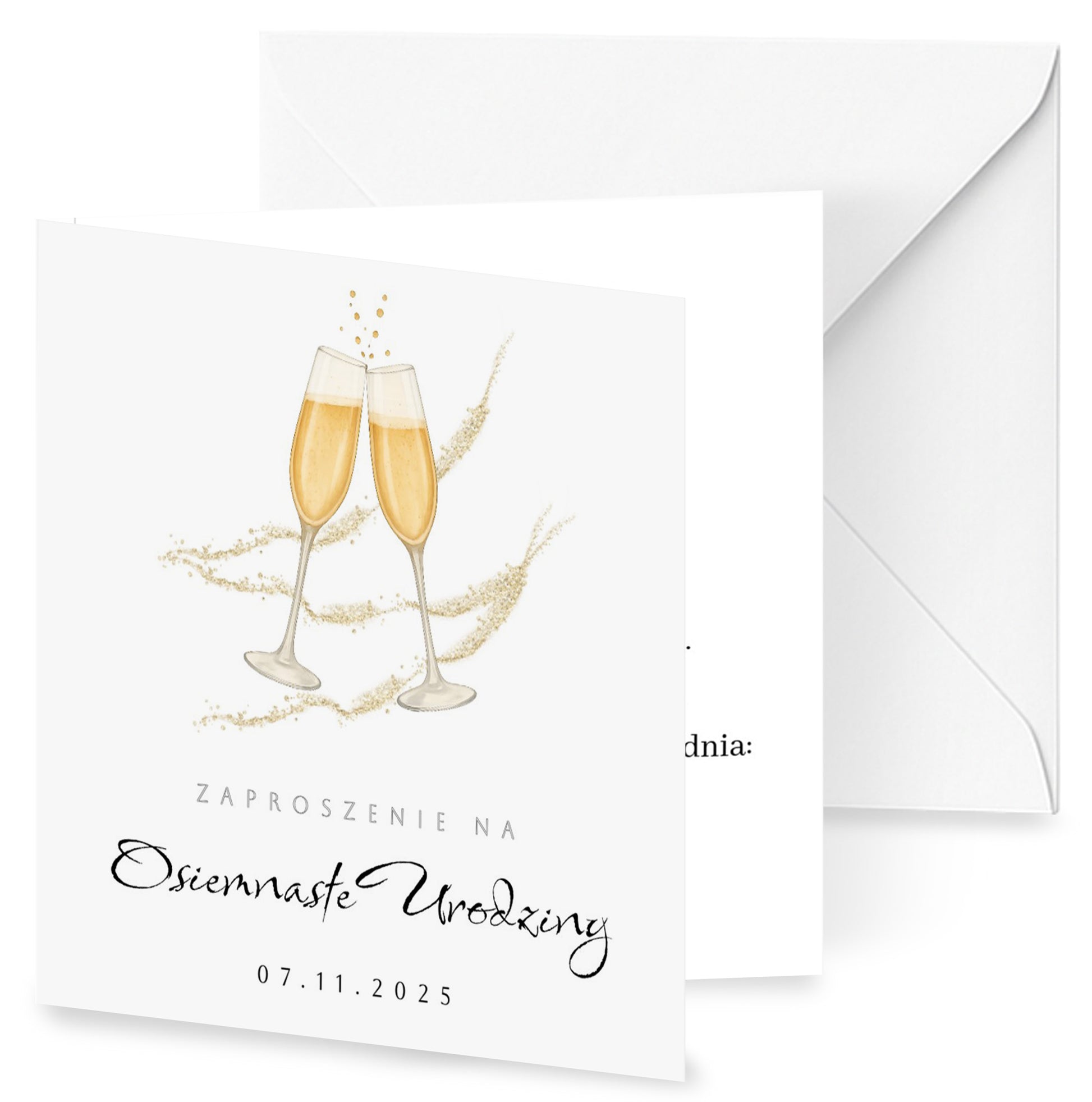 Zaproszenie na 18 urodziny 15x15 z kopertą - Kieliszki