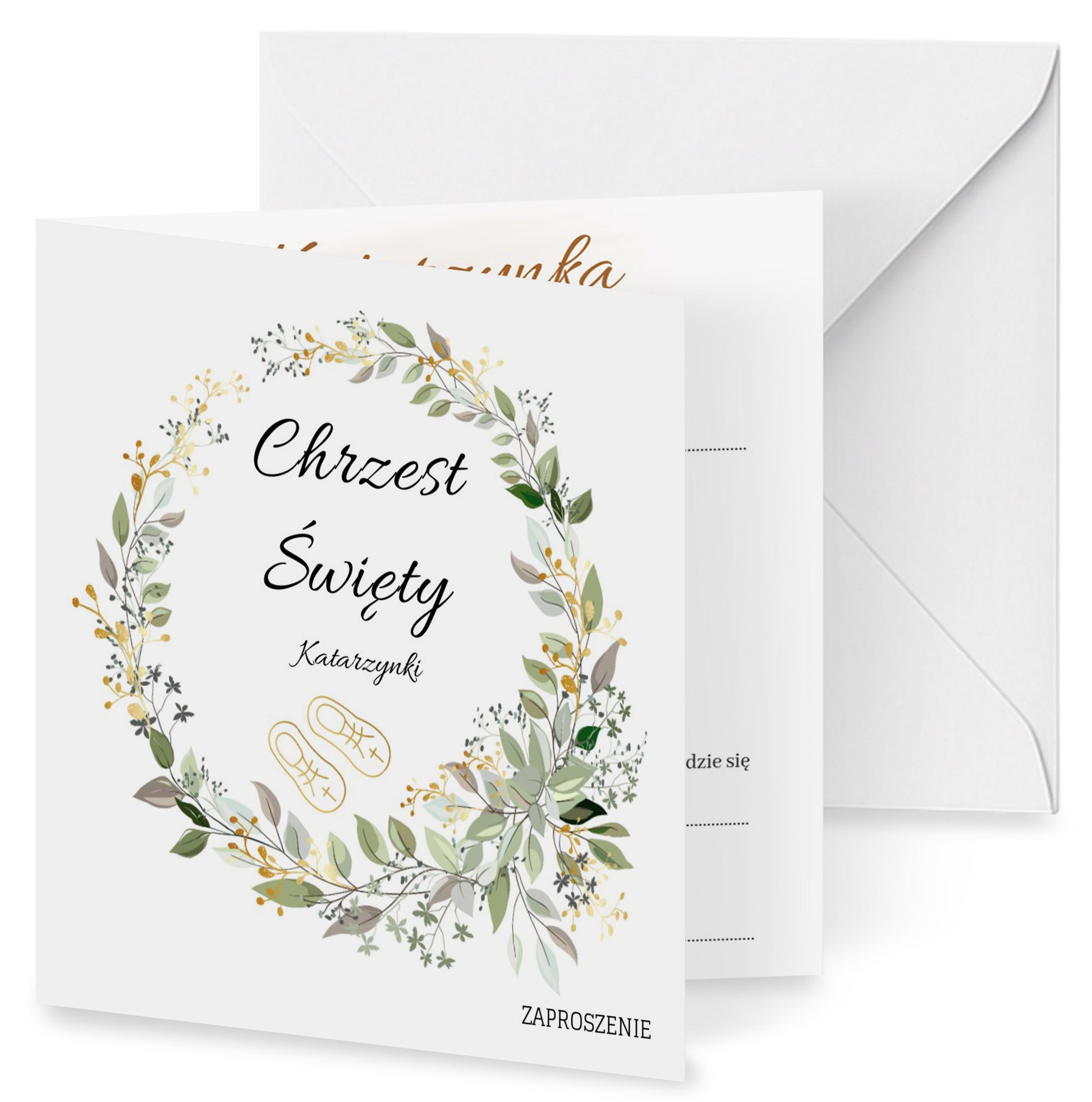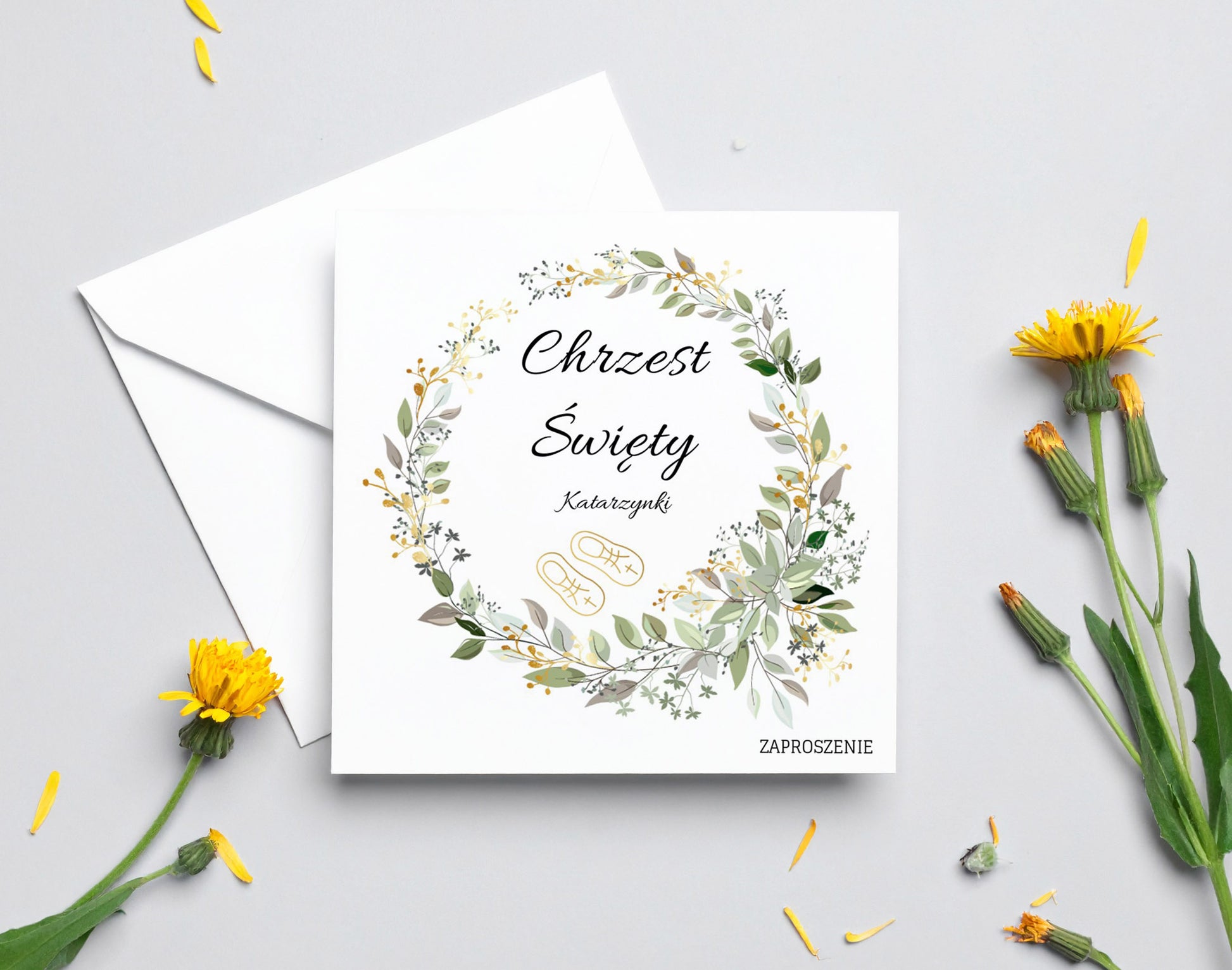 Zaproszenie na Chrzest składane 15x15 z kopertą - Boho